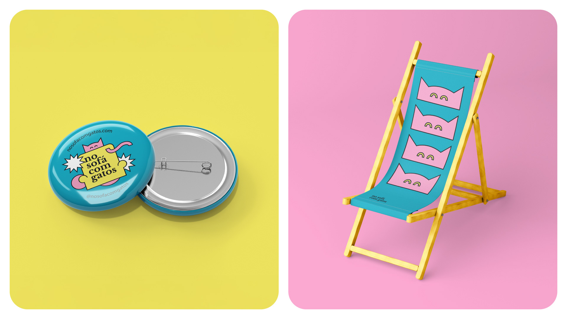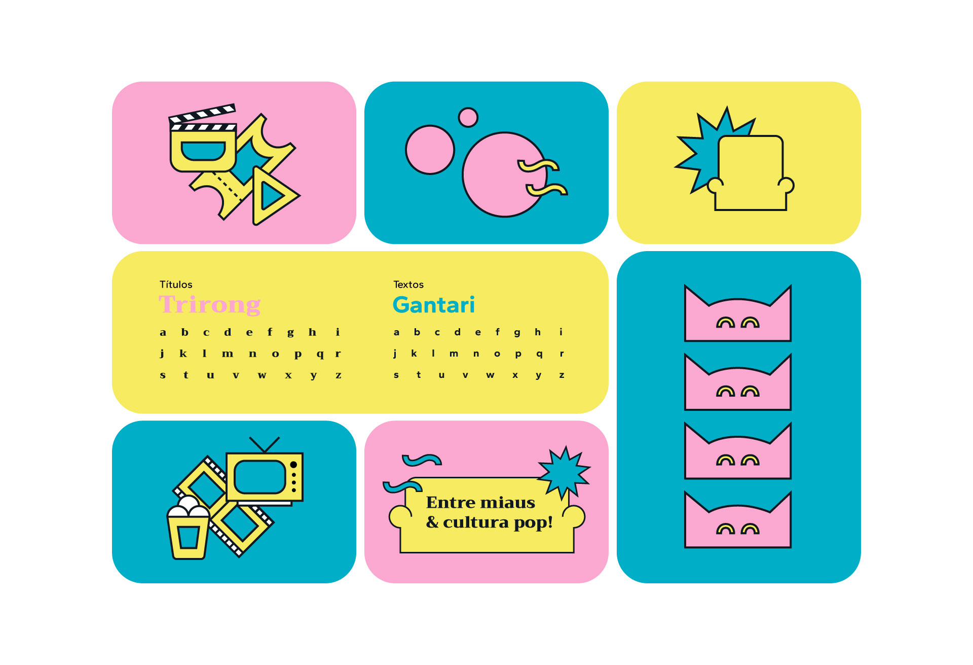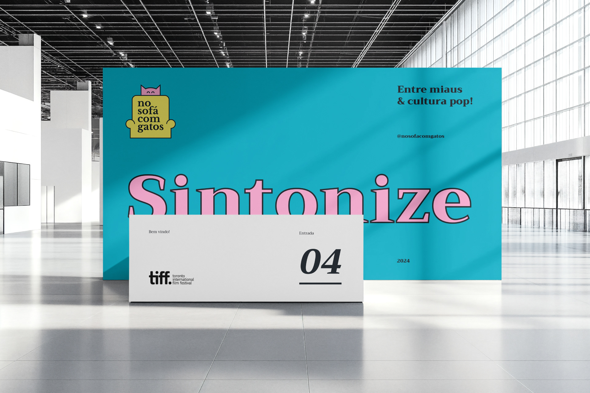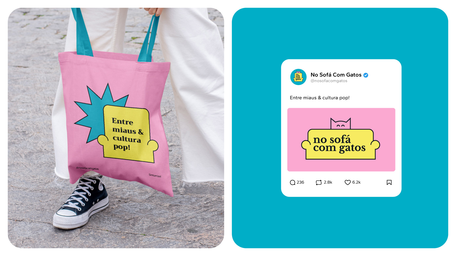 No Sofá Com Gatos (On the Sofa with Cats) was created based on the main references of its founder, Ana Carolina Ballan: her cats and the sofa, where she spent much of her time watching movies and series during the pandemic. This experience inspired the creation of a pop, minimalist, and humanized identity, reflecting her expertise in cinema and pop culture, directly connecting the brand to the audiovisual universe she shares.